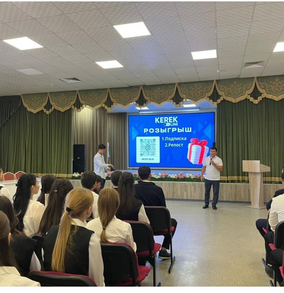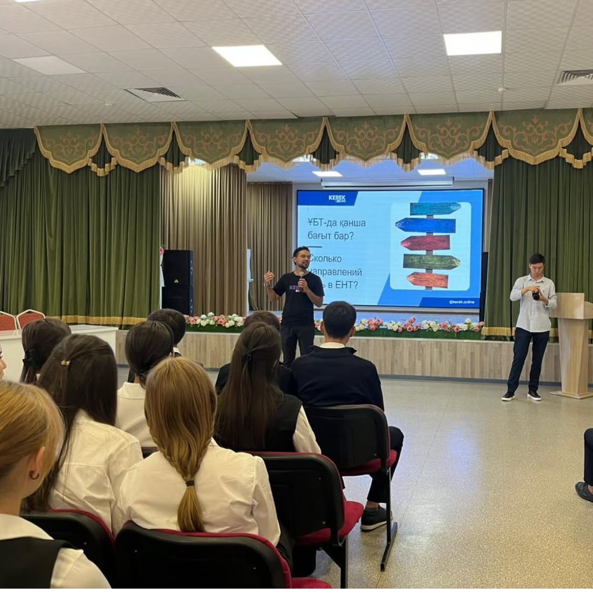 2025 жылы қыркүйектің 04 күні «Мұхтар Әуезов атындағы жалпы орта білім беретін мектеп-лицейі» коммуналдық мемлекеттік мекемесінде 10-11 сынып оқушыларына Ұлттық біріңғай тестілеуге дайындық барысын түсіндіру мақсатында Тараз қаласы «KEREK ONLINE» онлайн-білім беру орталығы мектебіміздің білім алушыларымен кездесу өткізді. Кездесу барысында оқушыларға Ұлттық біріңғай тестілеуге дайындық барысы, таңдау пәндері бойынша ақпараттар берілді.