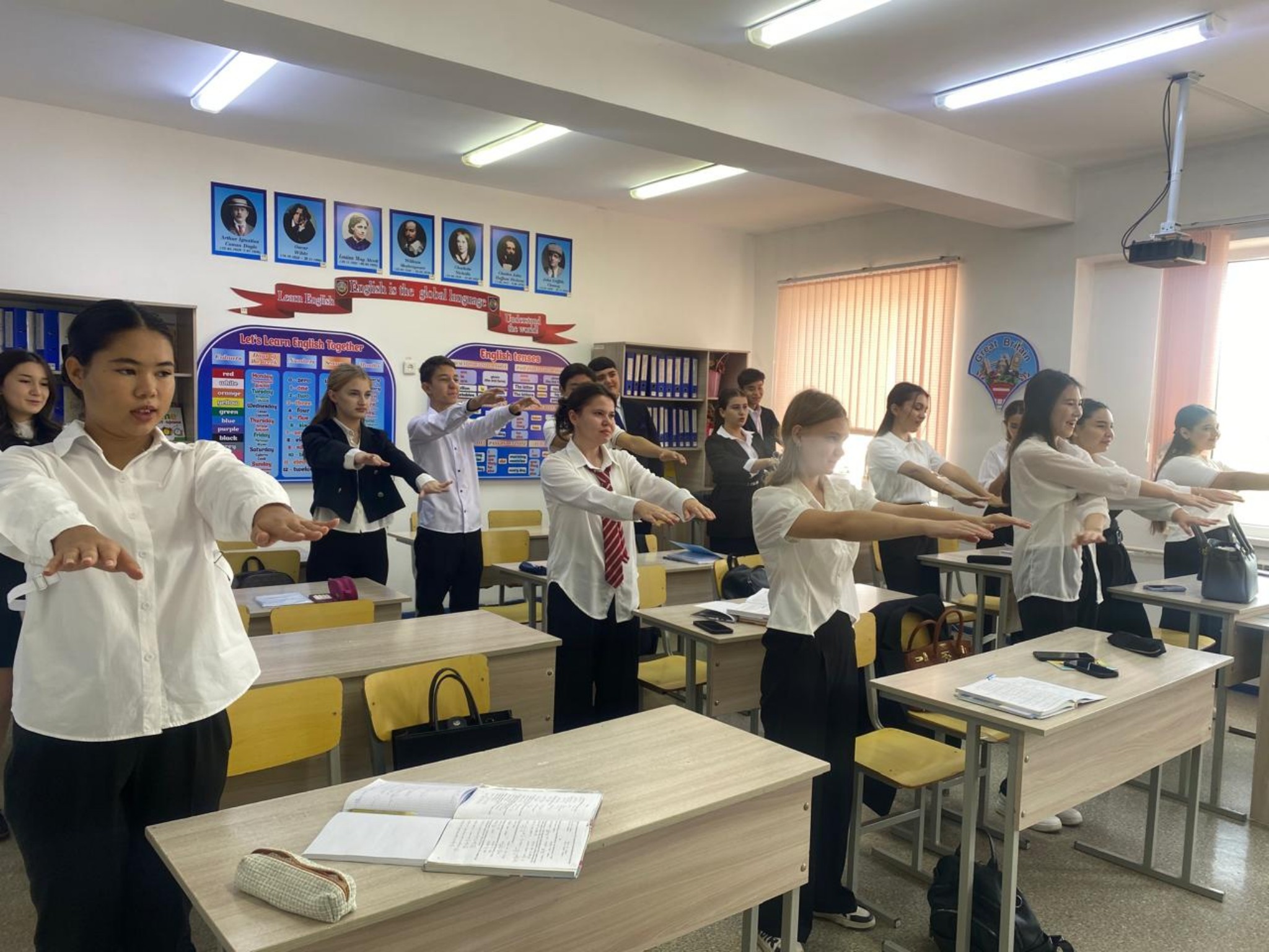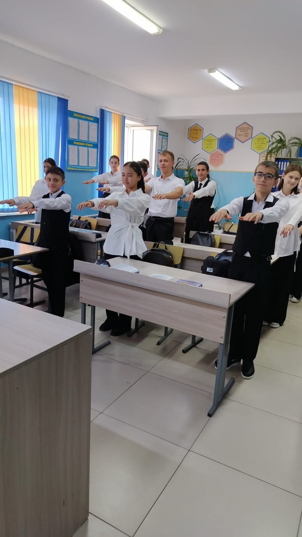 Бүгін, Қазақстан Республикасының Оқу-ағарту министрінің тапсырмасына сай мектебімізде 1-4;5-9;10-11сынып оқушылары таңғы жаттығу жүргізді.Әр пән мұғалімдері балаларға арнайы музыка қойып, көңіл бөлді.Жаттығу балаларды сергітеді, жақсы көңіл-күй сыйлады. Күнді тамаша өткізуге септігін түсіред