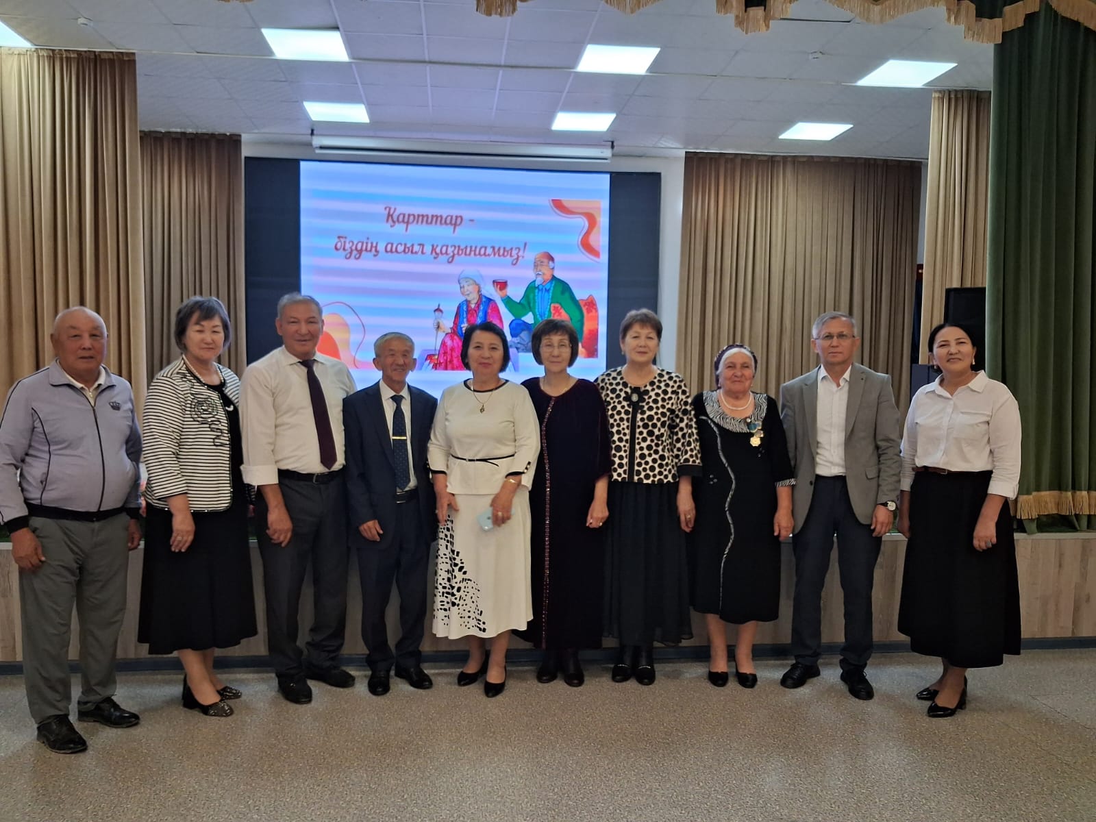 Бүгін біз бәріміз үшін ерекше күнде – қарттарға құрмет көрсету мерекесінде бас қосылды. Халқымызда «Қариясы бар ел – қазыналы ел» деген аталы сөз бар.Іс-шара барысында ән шашу, «Атаға құрмет-елге құрмет» атты көрініс,қонақтарға сөз берілді.Қария – ұрпаққа өнеге, тарихтың тірі куәсі, елдің асыл қазынасы. 10-11 сынып оқушылар және қонақ ретінде ауылдың, мектептің ардагер ұстаздары қатысты. Дуанабаев Айтжан, Жадыраева Тоқтанкүл, Дургалова Хампаша,Танкиева Клара, Абайева Назира, Үркеншиева Гүлсім, ата-әжелерімізге жастық шағын қалай өткені туралы т.б сұрақтар қойылды. Қонақтарымыз сөз соңында өздерінің лебіздерін білдірді.