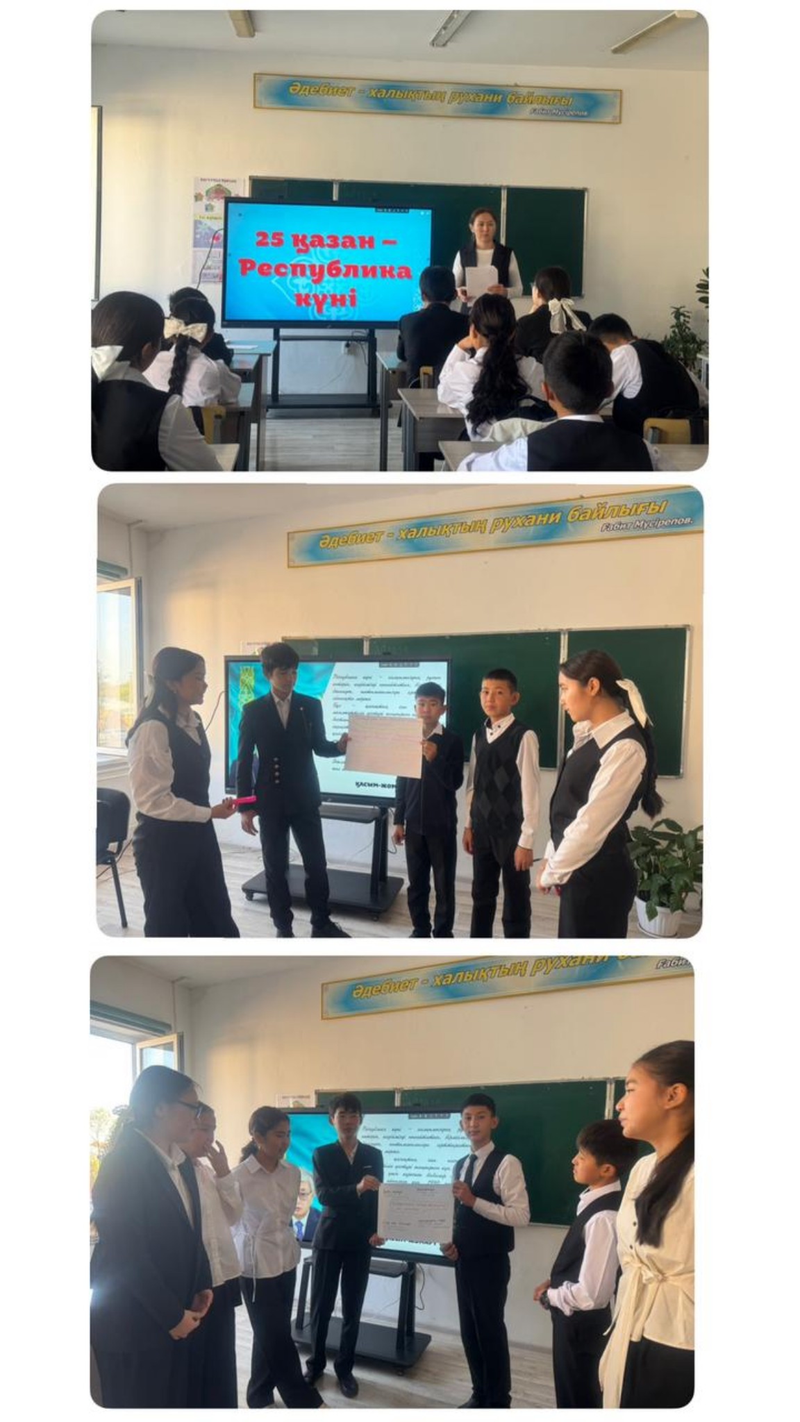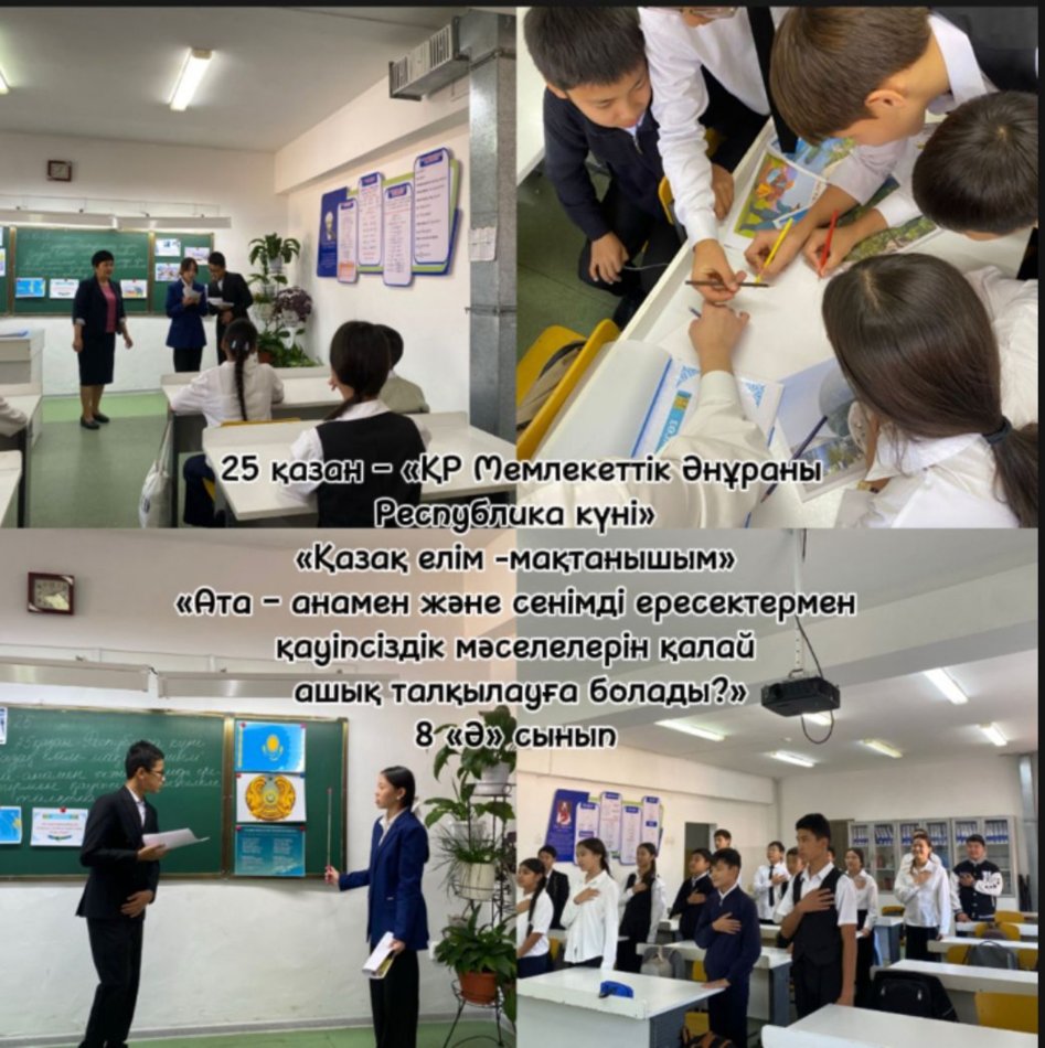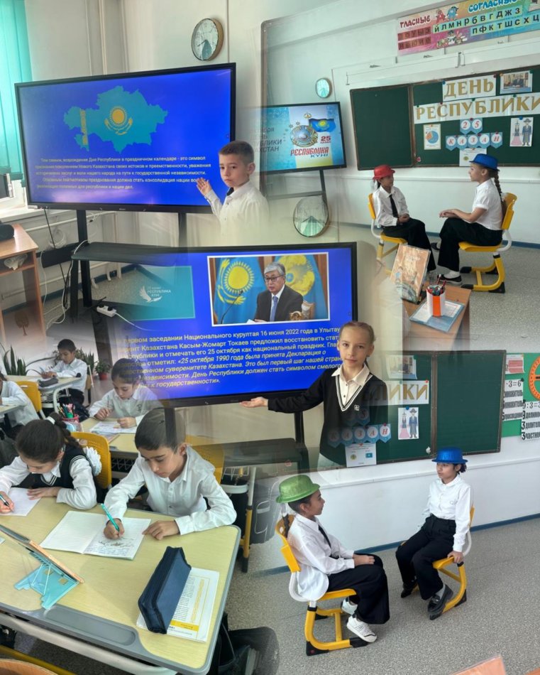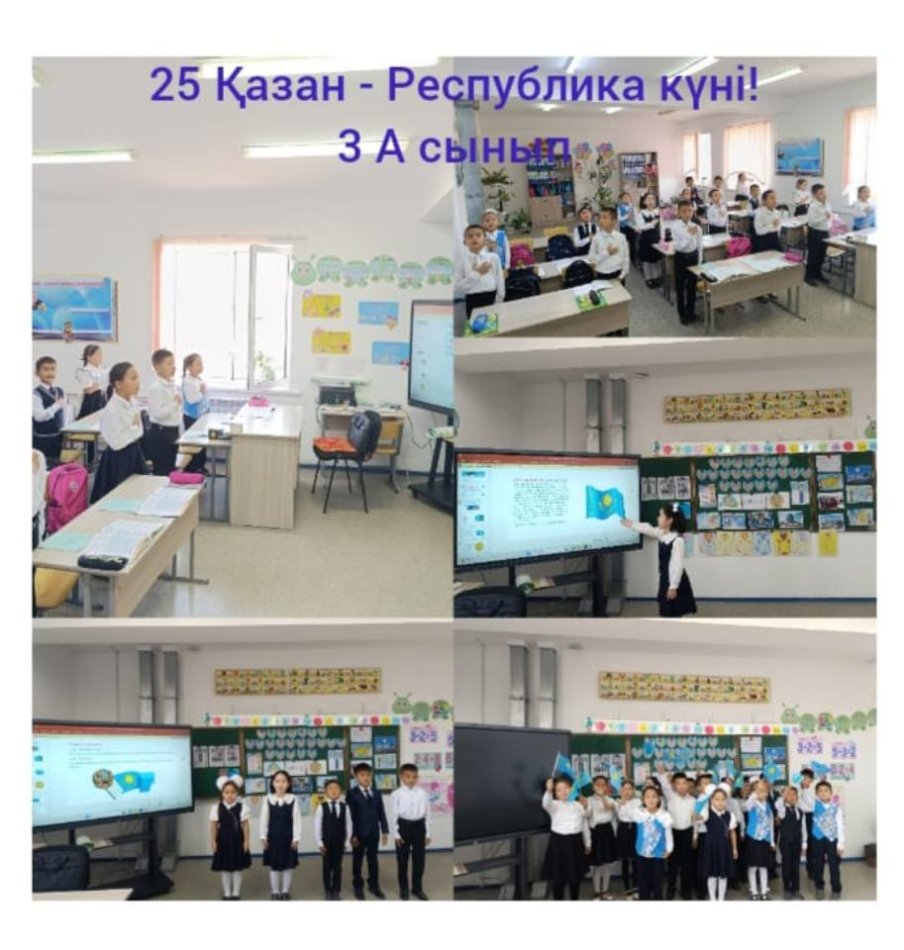 Бүгін, мектебімізде 25-қазан Республика күніне орай бірыңғай тәрбие сағаты өткізілді. "Менің Қазақстаным-менің мақтанышым", "Менің Отаным-Қазақстан!" тақырыбында.