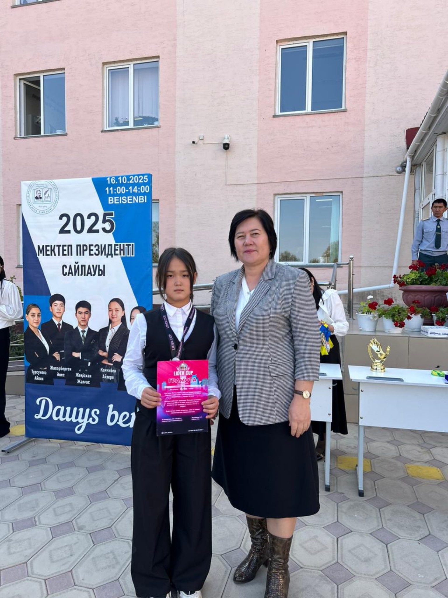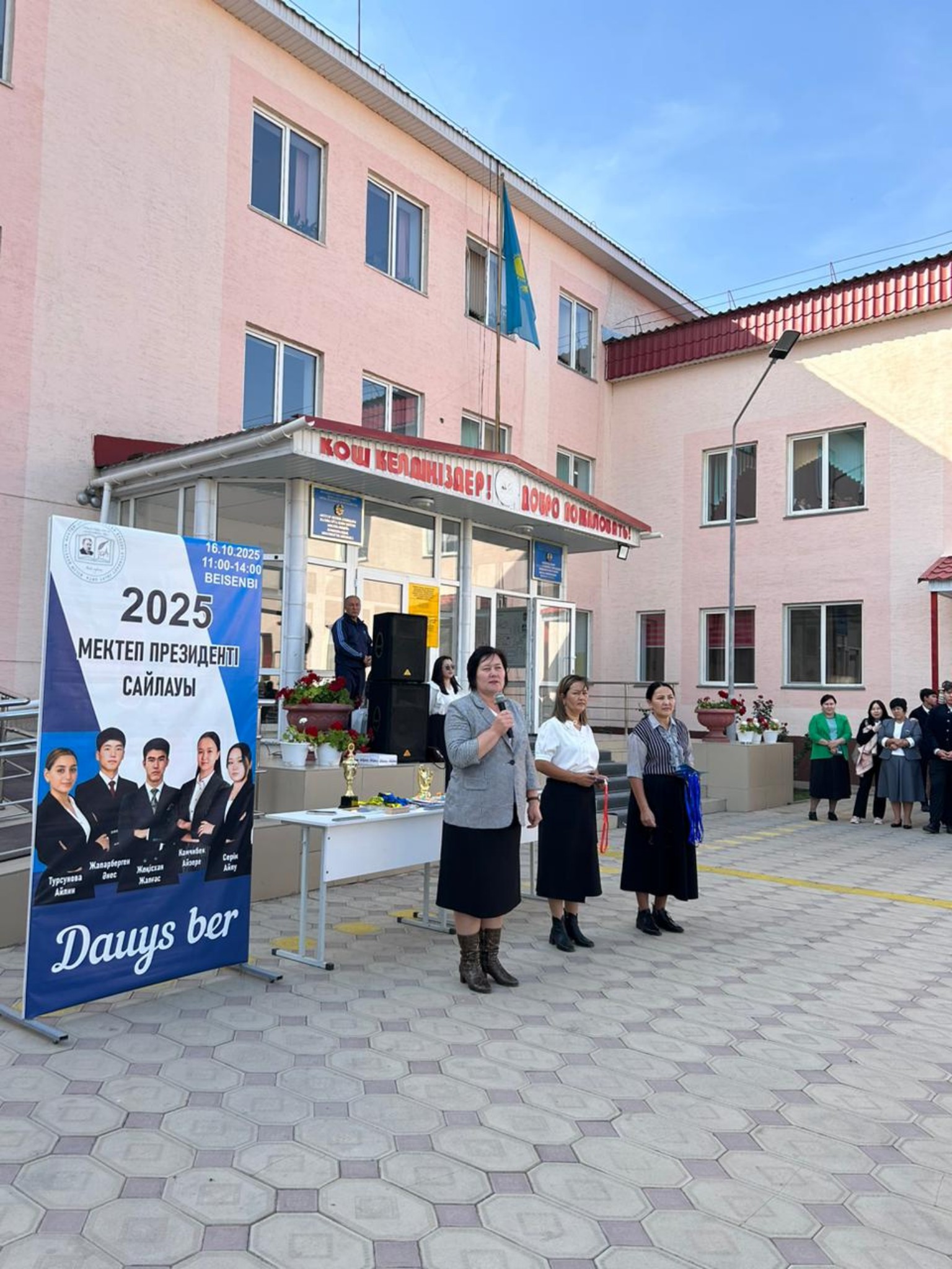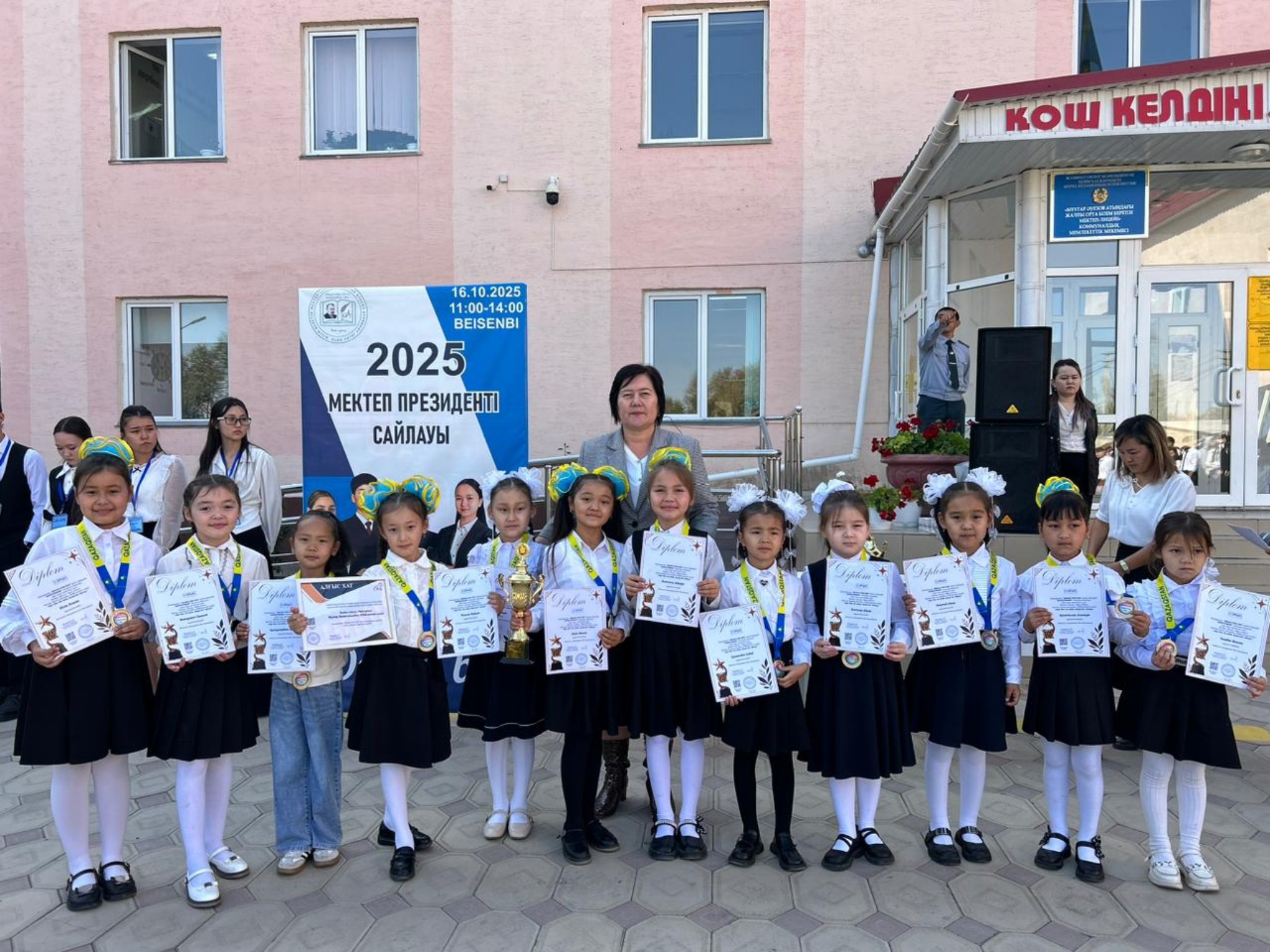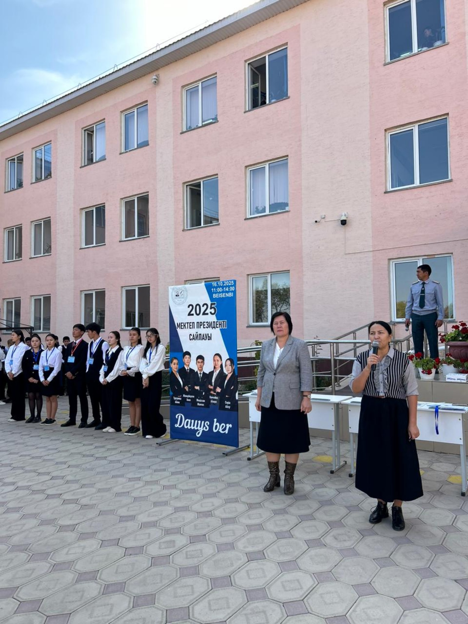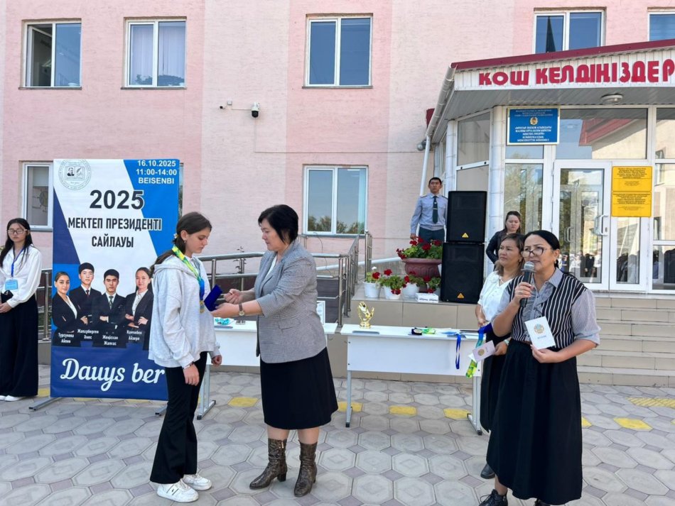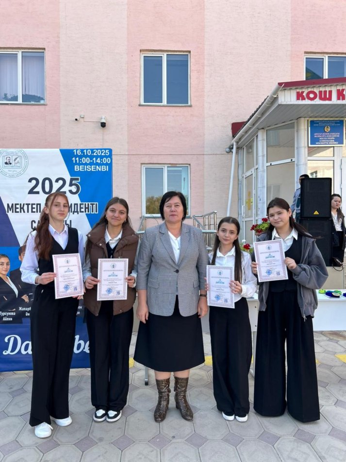 Мектеп директоры Н.С.Койшиманова оқушыларға Өзін өзі басқару ұйымының жұмыстарының маңыздылығын, белсенді болуға шақырды. Мектеп Президенті болып Жапаберген Әнес бекітілді. Ол Ант қабылдап, міндетімен танысты. Ұйым мүшелеріне куәлік тапсырылды Сонымен бірге оқушылардың жетістіктері бойынша әр түрлі саладағы оқушылар марапатталды. Спорттық, өнер саласы.