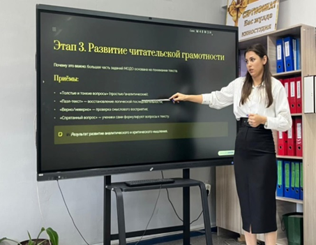 Семинар барысында пән мұғалімдері ББЖМ-ге қойылатын негізгі талаптар, нормативтік құжаттар және тапсырма құрастыру алгоритмі жан-жақты түсіндірілді. Сонымен қатар, ББЖМ тапсырмаларын әзірлеуде және оқу жетістіктерін бағалауда жасанды интеллект құралдарын тиімді пайдалану жолдары ұсынылды. Мұғалімдер ЖИ платформаларын қолдана отырып, оқу мақсаттарына сай тапсырмалар жасау, деректерді талдау, білім олқылықтарын анықтау және оқушылардың оқу нәтижелерін мониторингілеу мүмкіндіктерімен танысты.