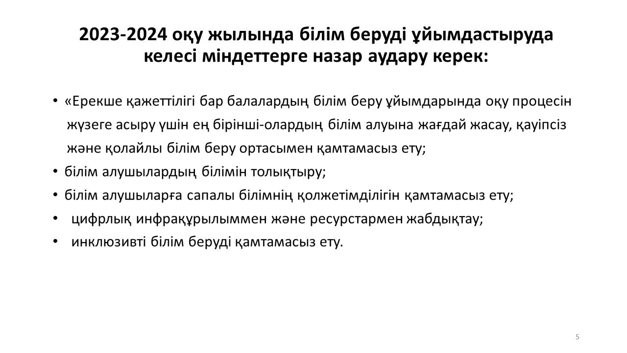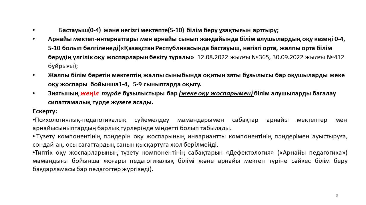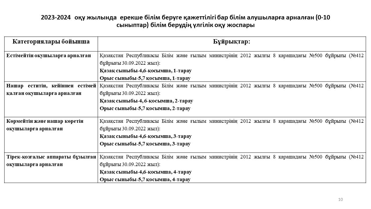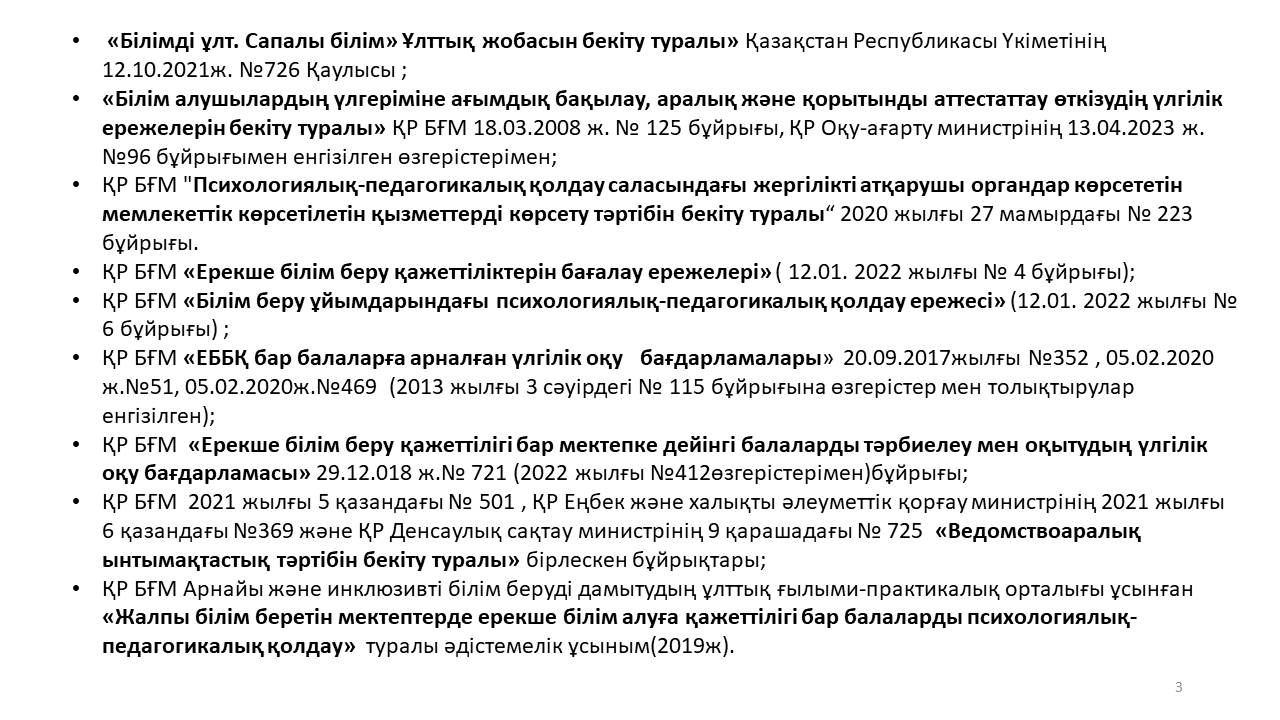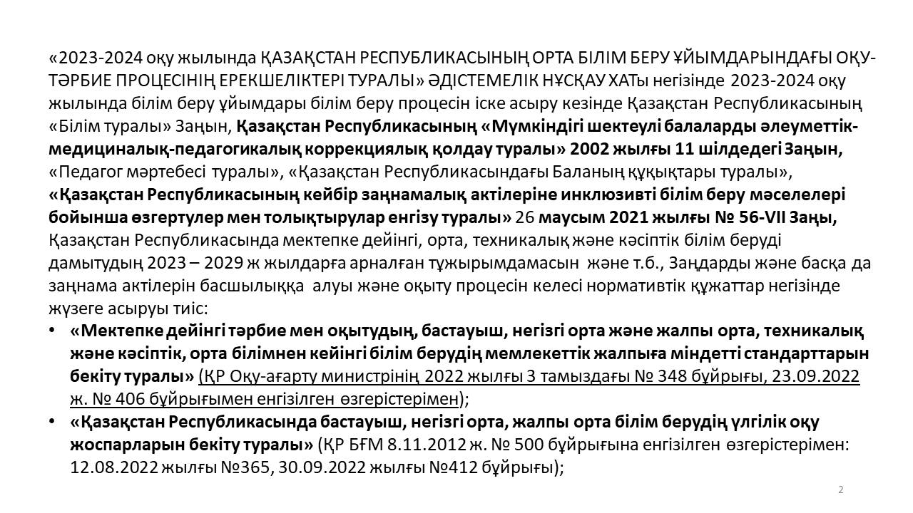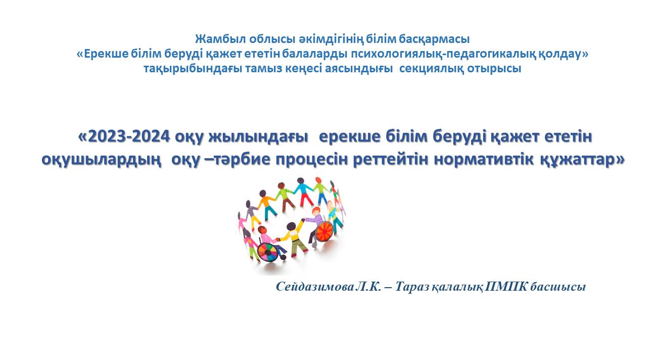 31 август 2023 0 1 2 3 4 5 2023-2024 ож ерекше білім беруді қажет ететін оқушылардың оқу-тәрбие процесін реттейтін нормативтік құжаттар