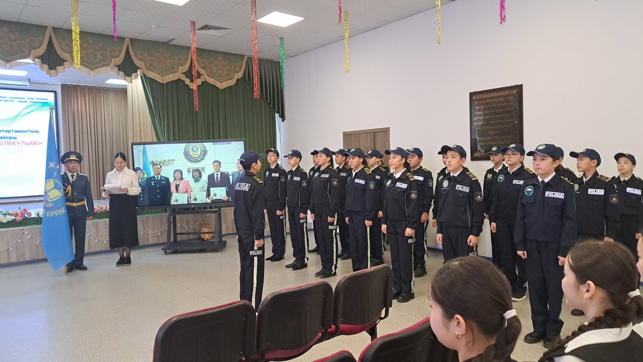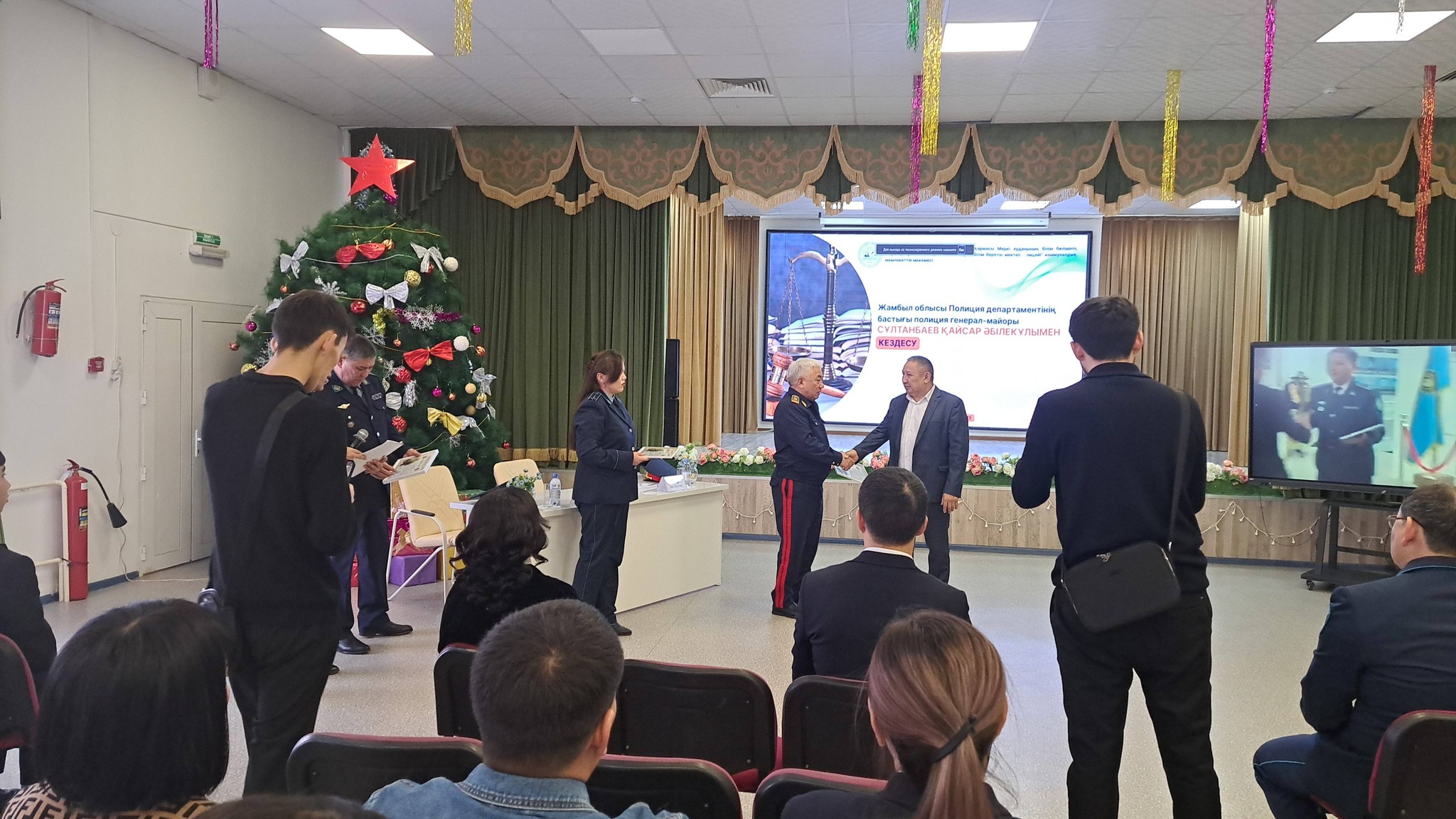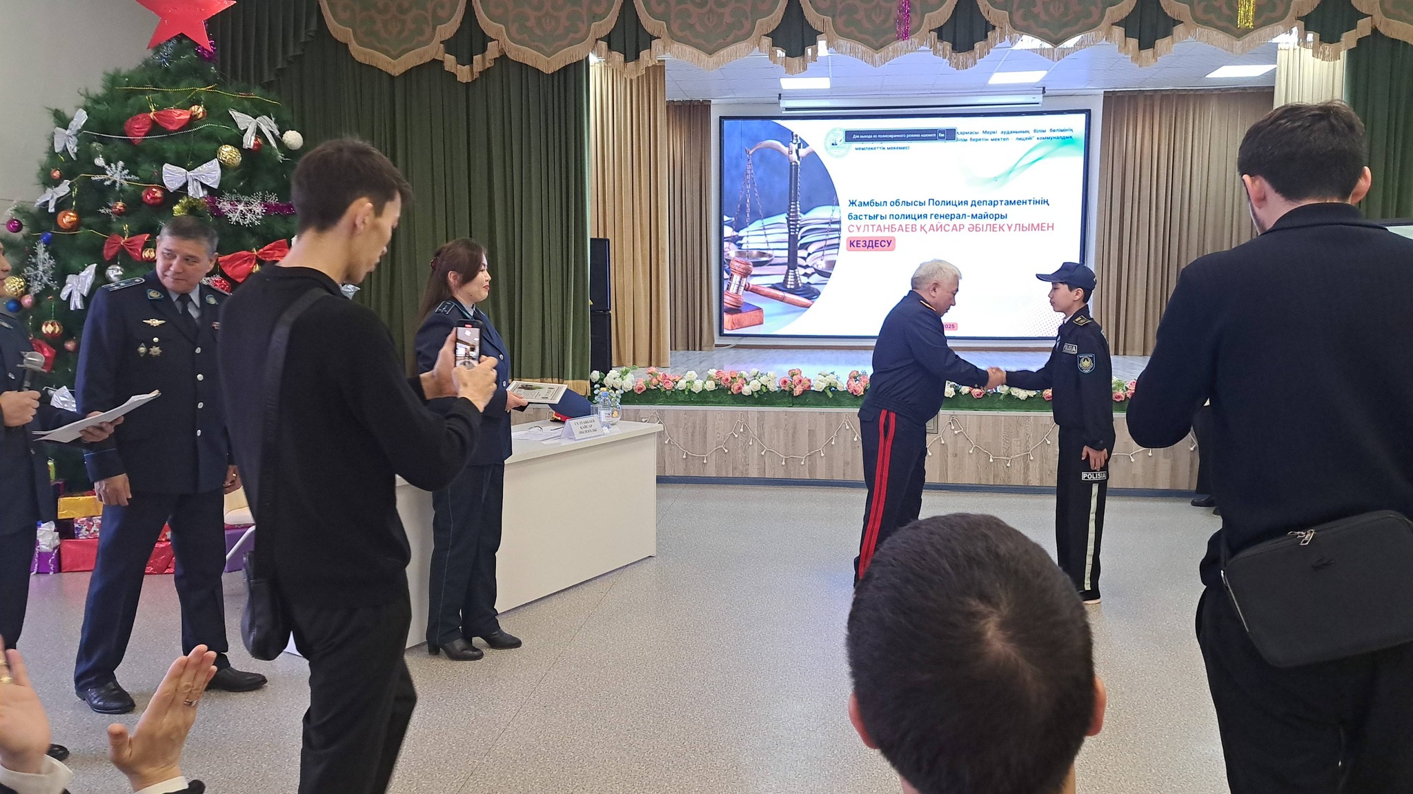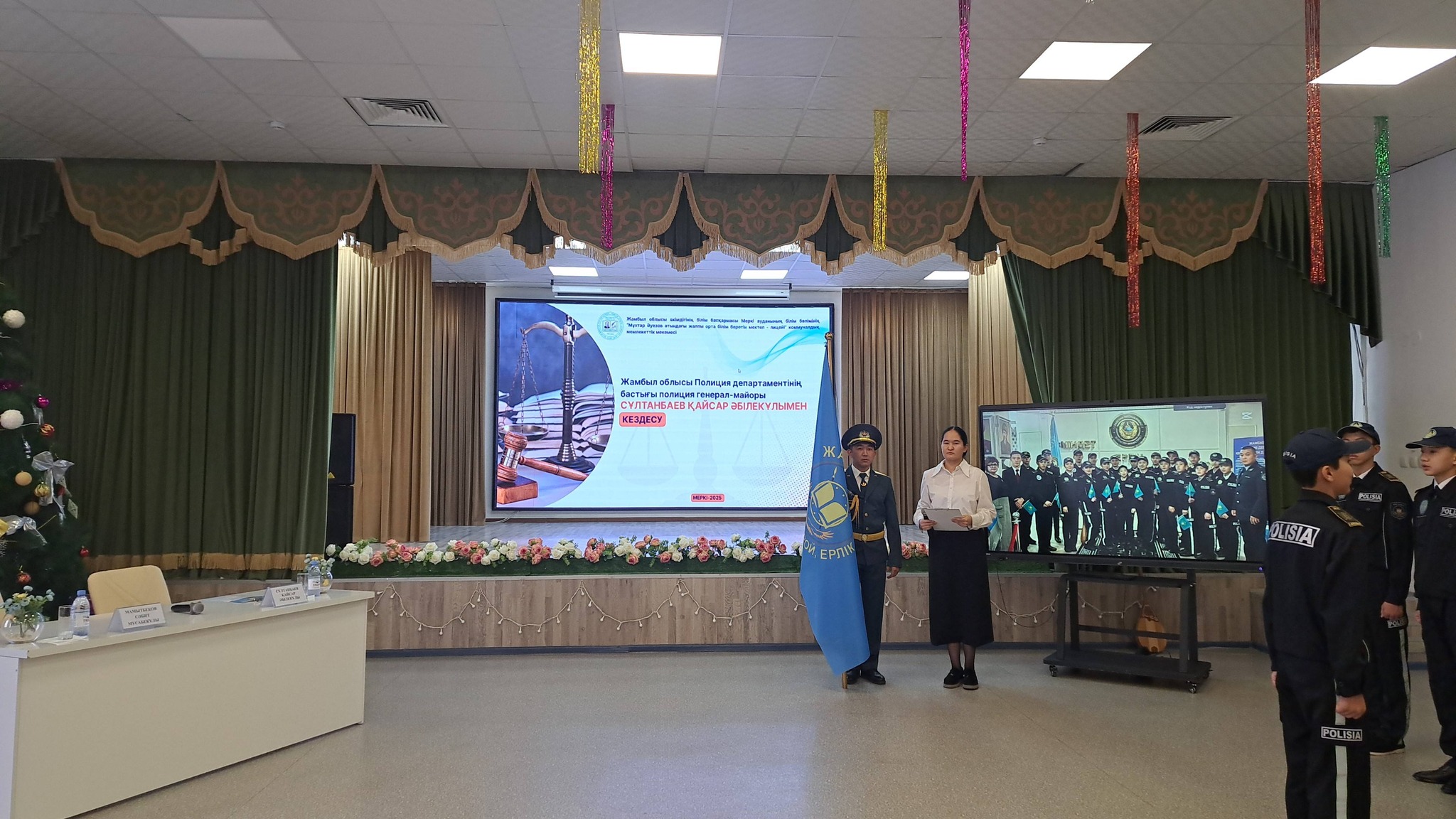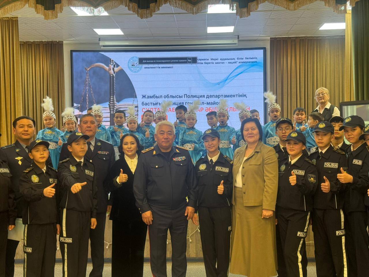 Іс-шараға Жамбыл облысы Полиция департаментінің бастығы генерал-майор Қайсар Әбілекұлы Сұлтанбаев, Жамбыл облысы Полиция департаментінің қызметкерлері, Меркі ауданы полиция бөлімінің басшылығы, аудандық білім бөлімінің өкілдері, мектеп әкімшілігі, педагогикалық ұжым, ата-аналар қауымдастығы және оқушылар қатысты. Қайсар Әбілекұлы жас сақшыларды құттықтап, «Жас сақшы» сыныбының қызметі кәмелетке толмағандар арасындағы құқық бұзушылықтың алдын алуда маңызды рөл атқаратынын атап өтті.