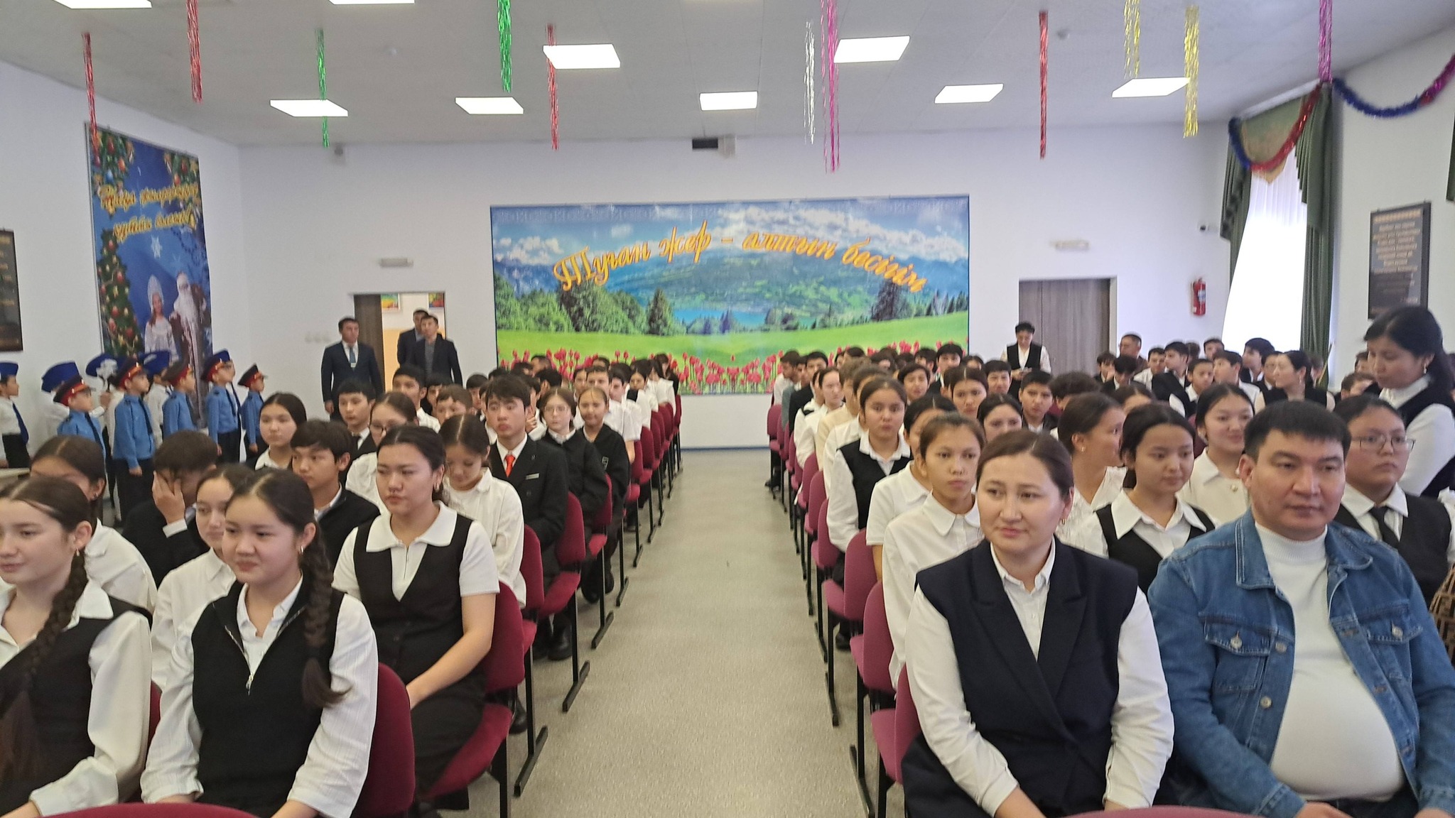 2025 жылдың 26 желтоқсан күні Жамбыл облысы, Меркі ауданы Мұхтар Әуезов атындағы мектеп-лицейінде 8-сынып оқушыларынан құралған «Жас сақшы» сыныбына салтанатты Ту тапсыру рәсімі өткізілді.