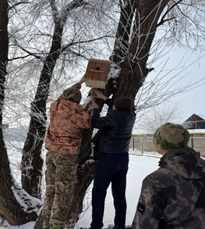 Биоалуантүрлілікті сақтау және қалпына келтіру жөніндегі іс-шараларды іске асыру, барысында мектебіміздің оқушылары Құстарға қолайлы жағдай барысында бірнеше ұя жәшіктерін (скворечниктерді) ағаштан жасап келді. Ормандарды және жануарлар дүниесін қорғау, өңірлік парк қызметкерлерімен бірге кеше ағаштарға іліп шықты. Әлі де бұл жұмыстар жалғаспақ.