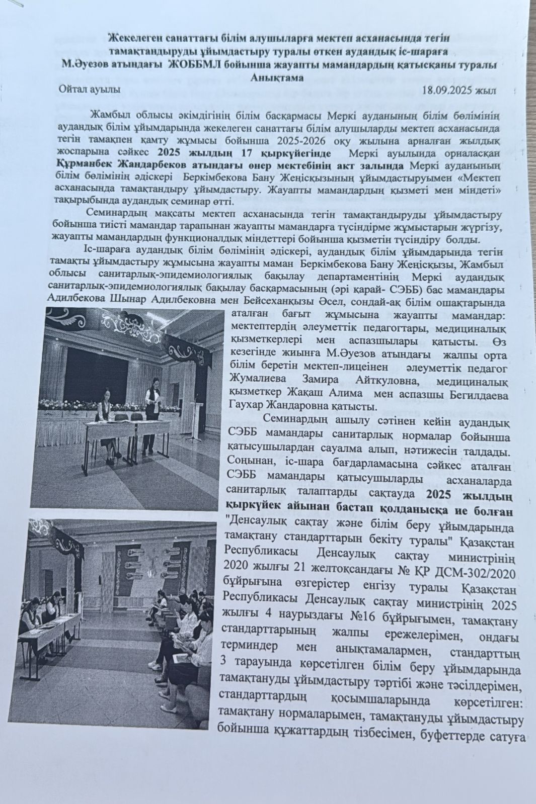Анықтама » "Общеобразовательная школа-лицей имени Мухтар Ауезова"
