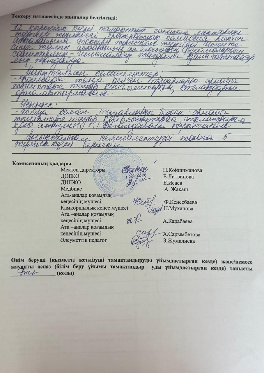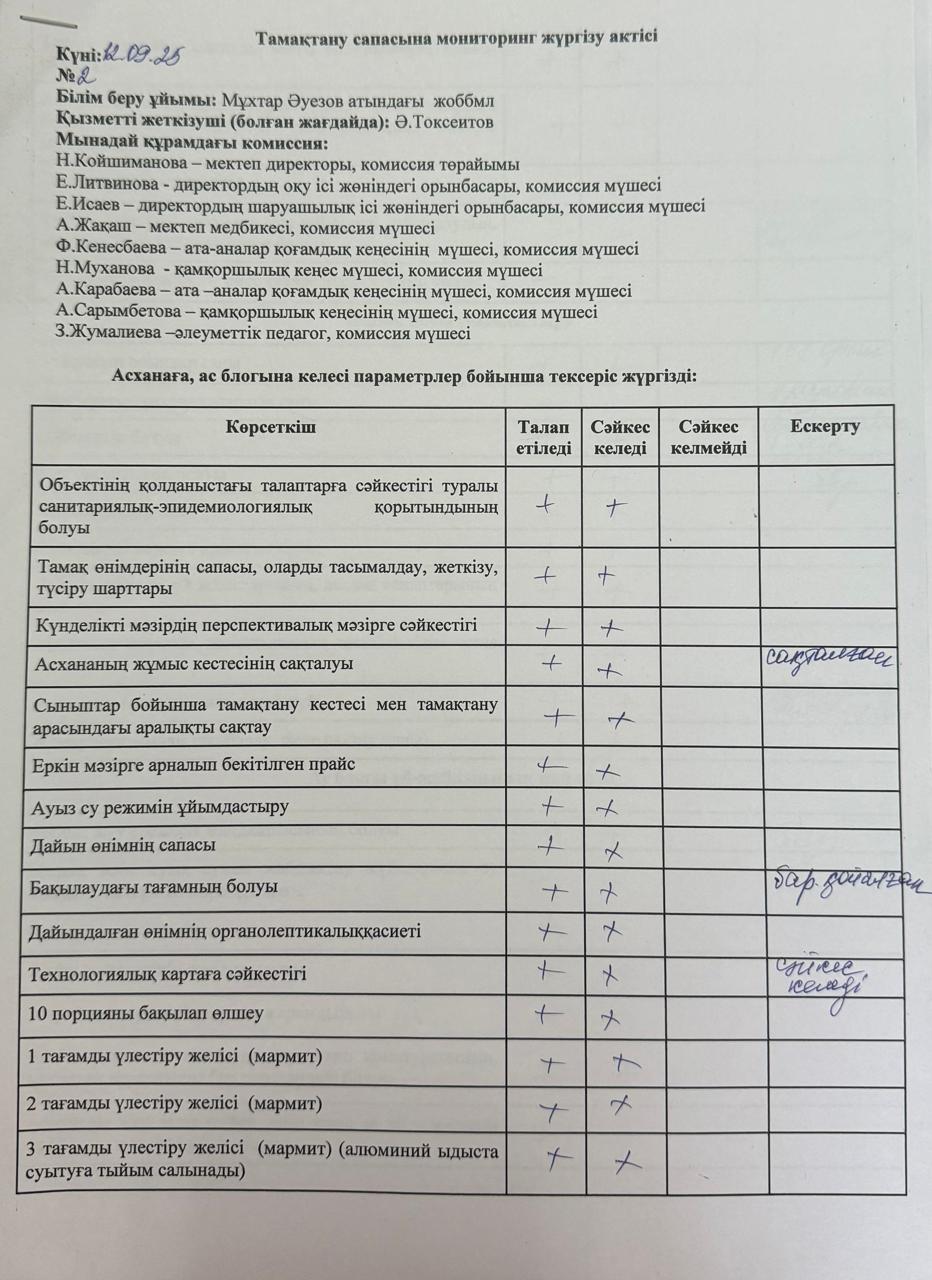 Тамақтану сапасының мониторингісі » "Общеобразовательная школа-лицей имени Мухтар Ауезова"