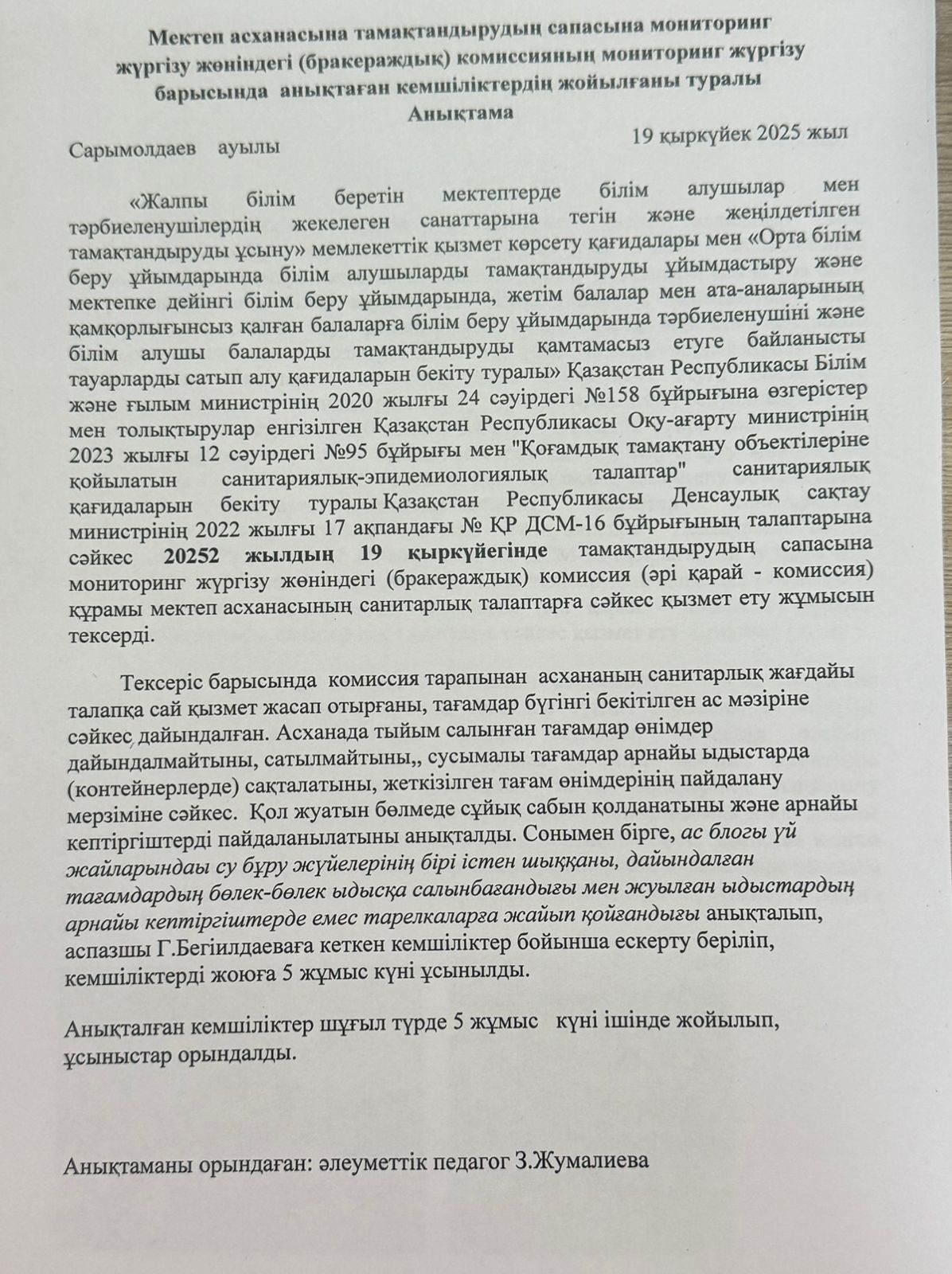 Есепші бөлімі: