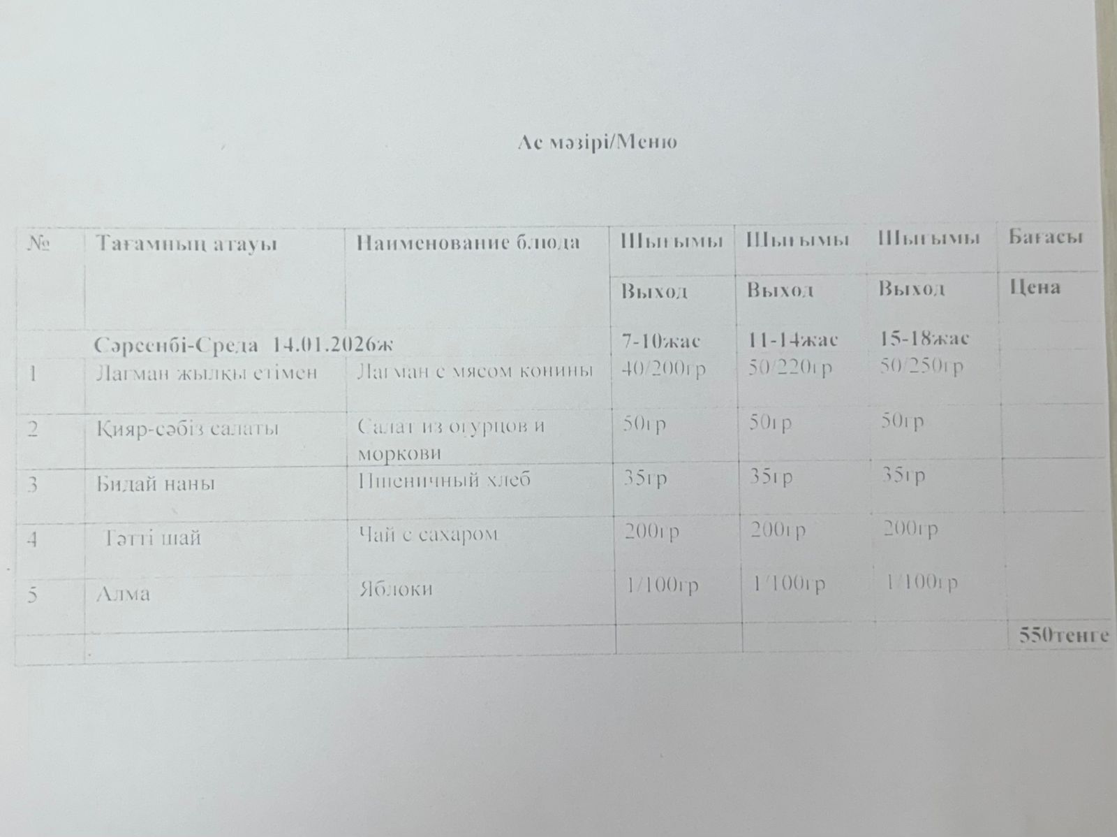 10 январь 2023 Ас мәзірі